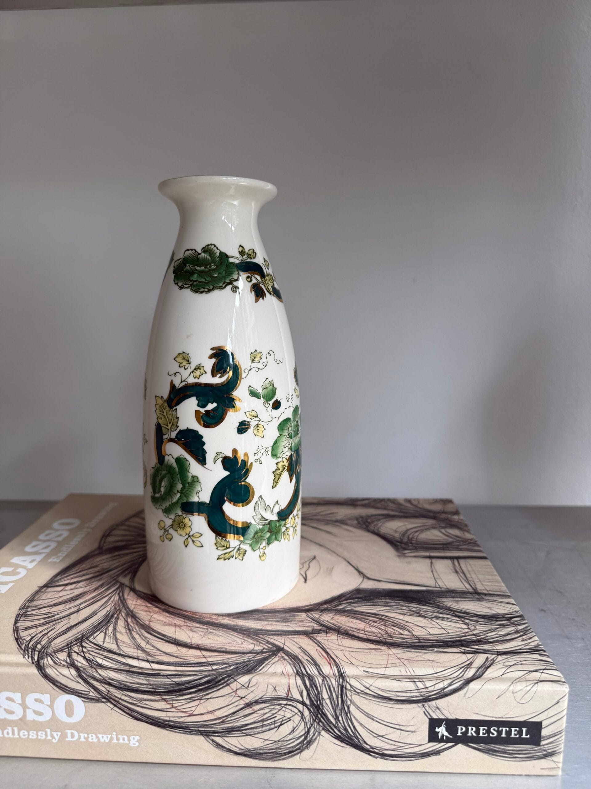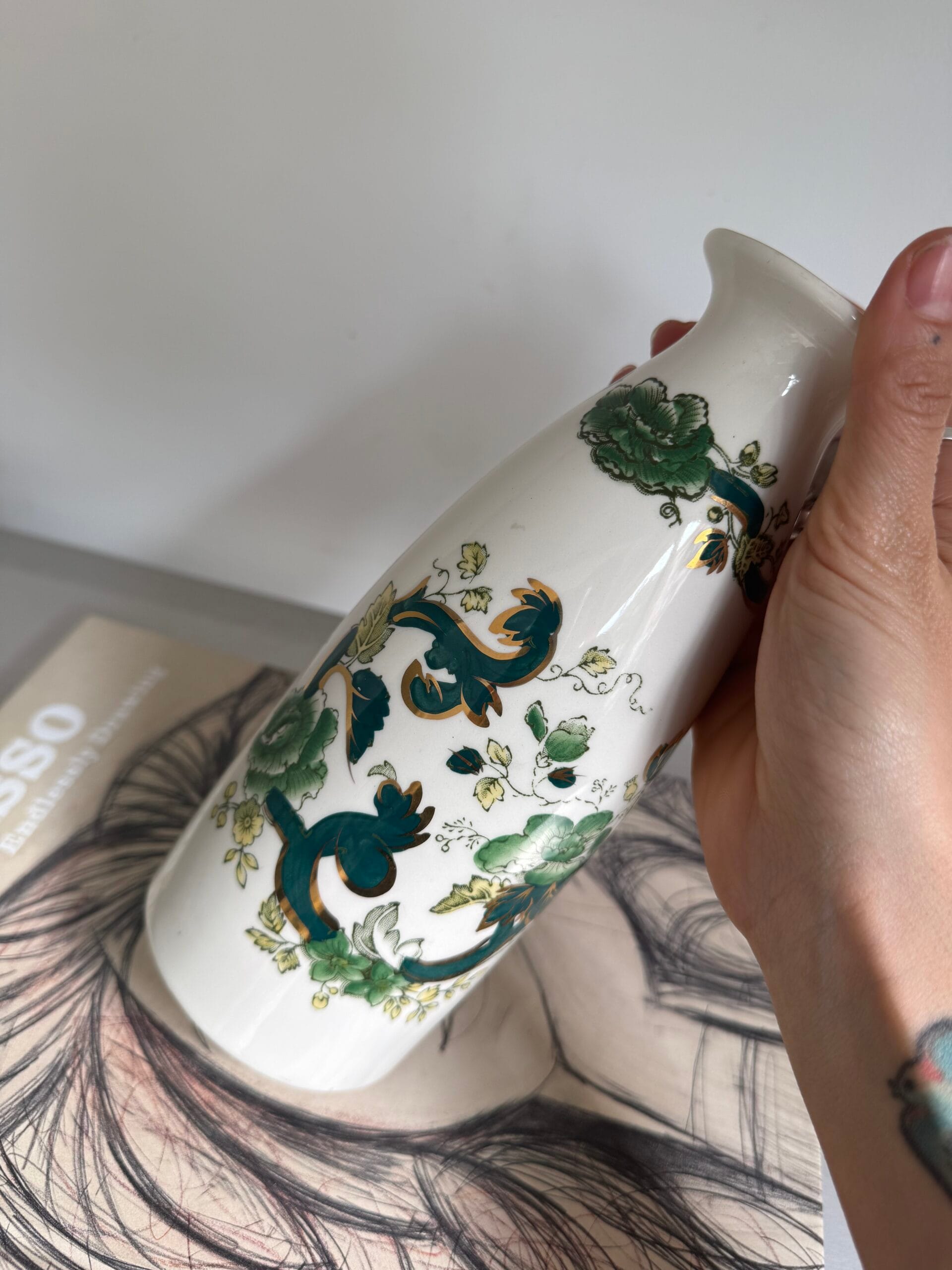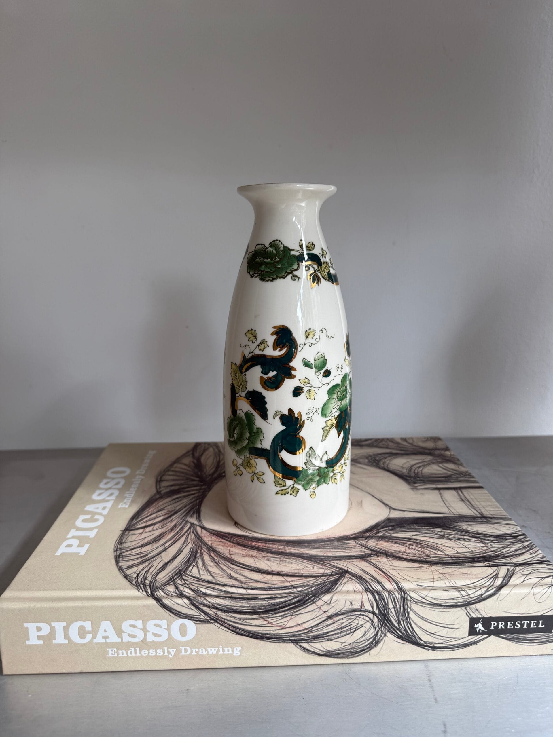 Narrow White Porcelain Vase With Green Flowers – 9