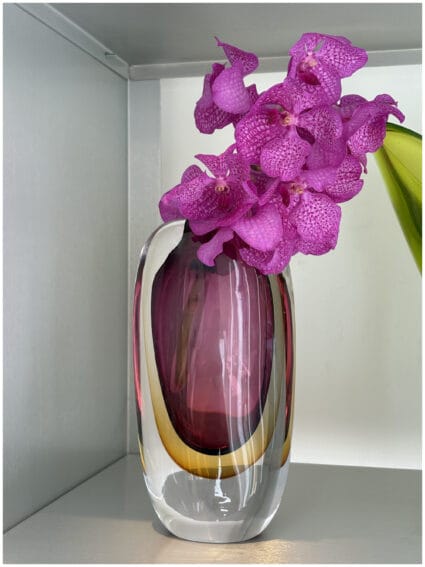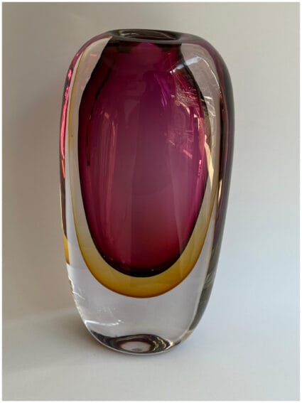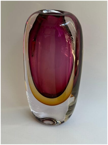 pink and yellow glass vase