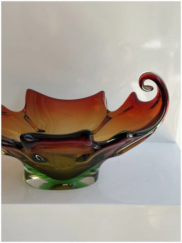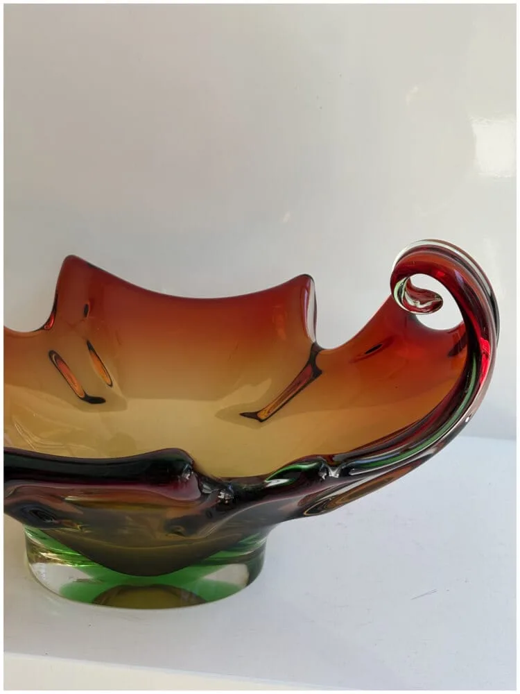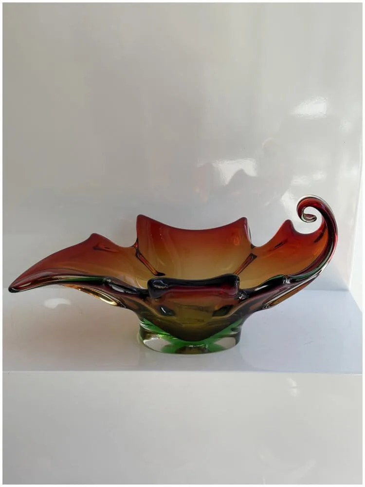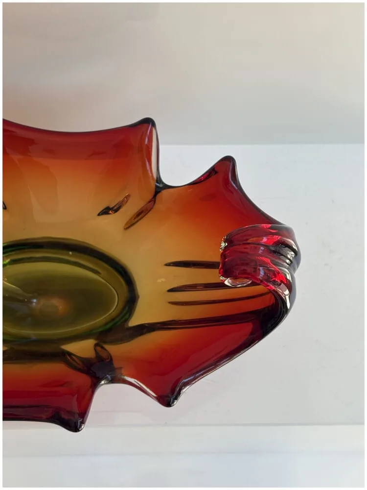 Red & amber Murano Glass leaf-shaped centerpiece bowl