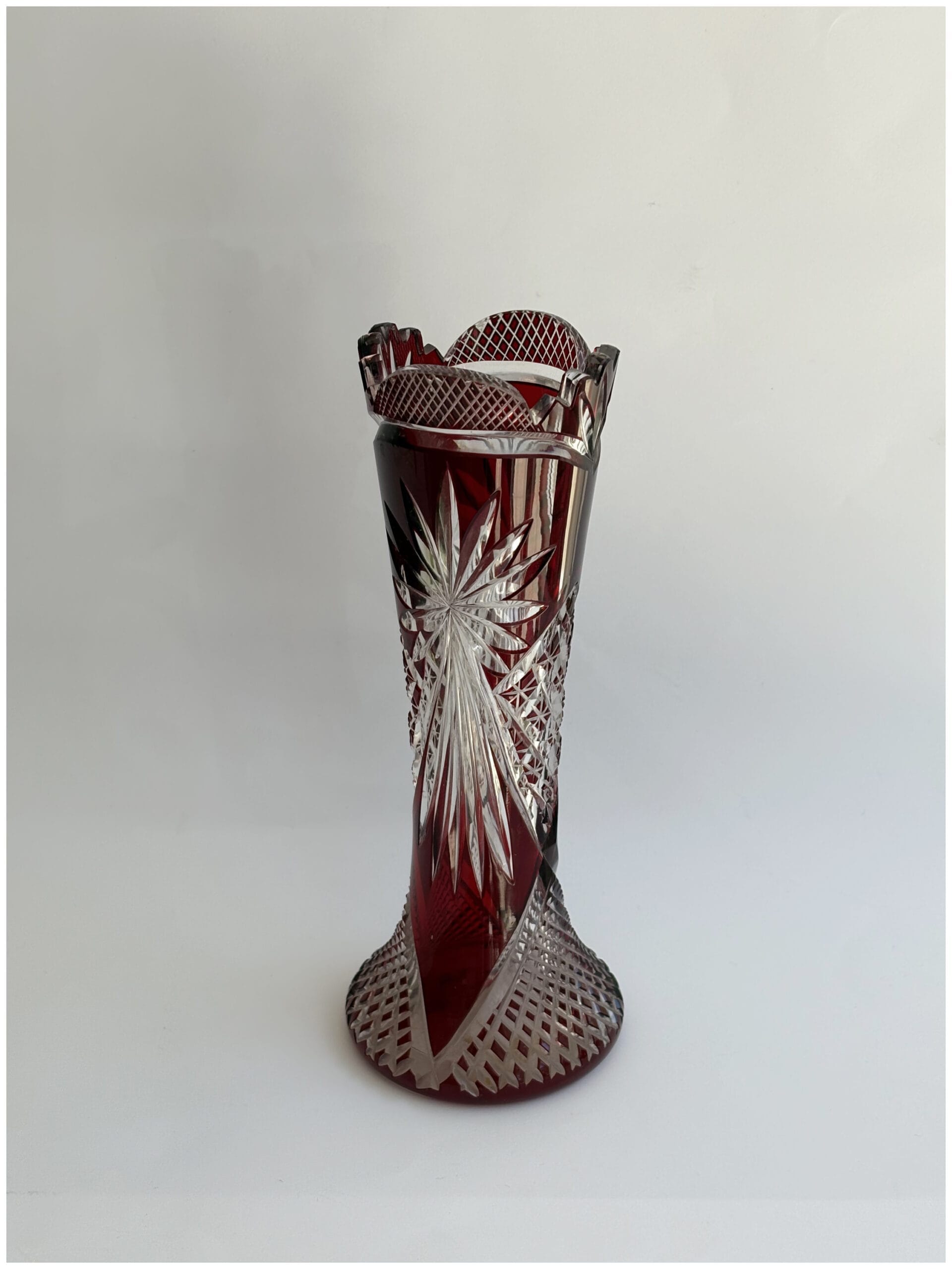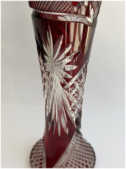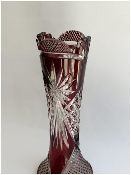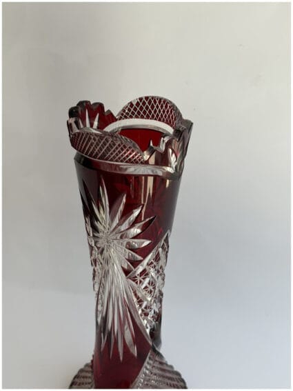 Ruby Red Bohemian Cut Crystal Vase