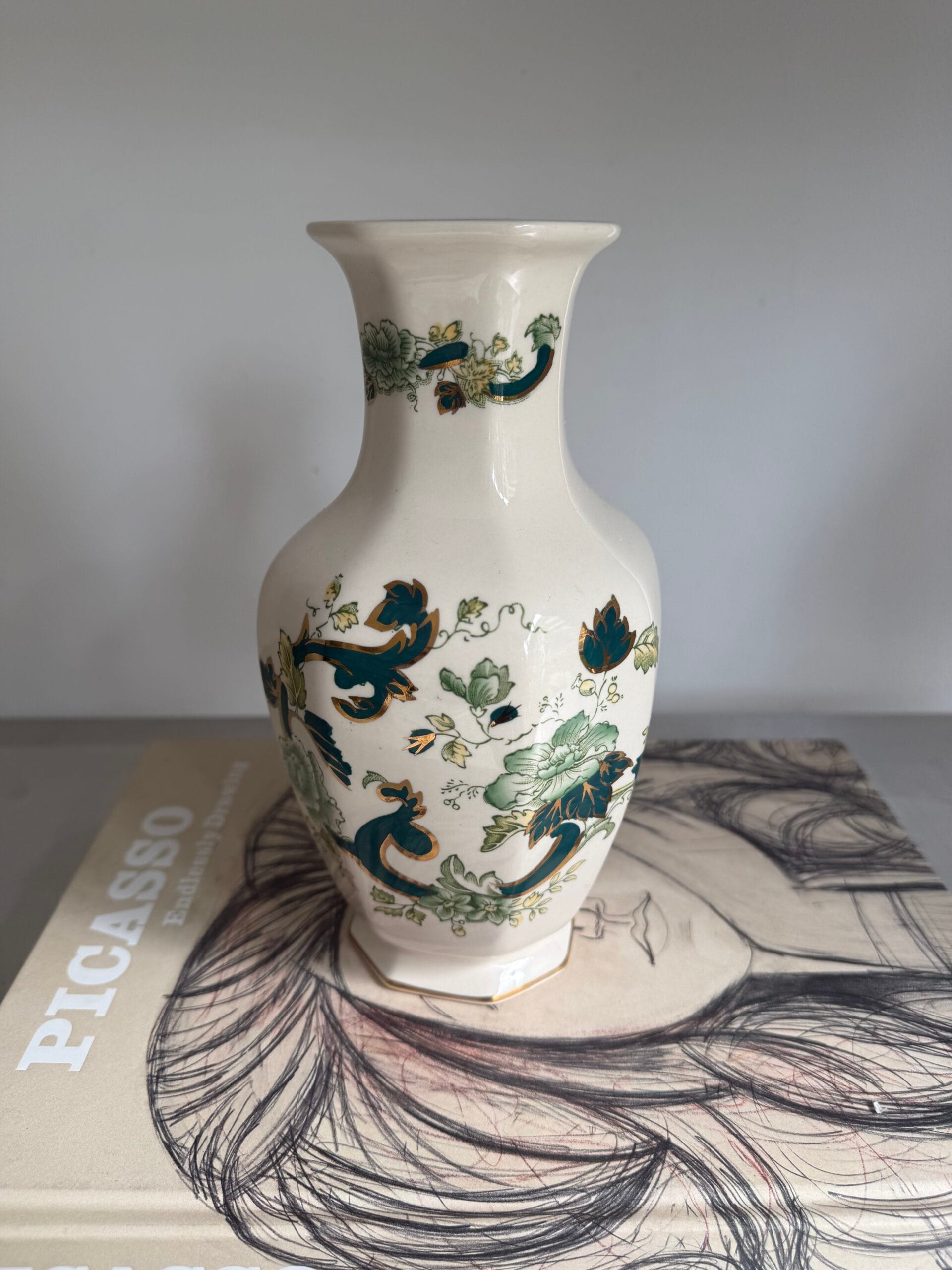 White Porcelain Vase With Green Flowers -2